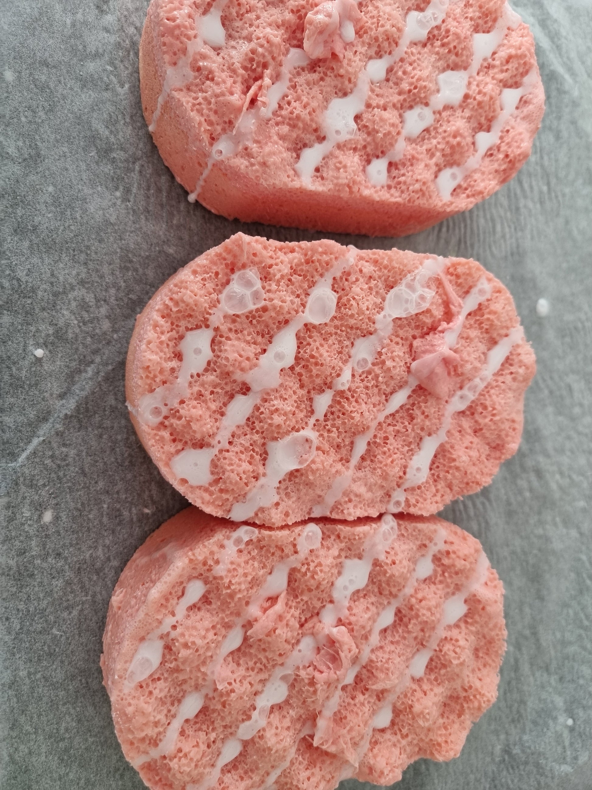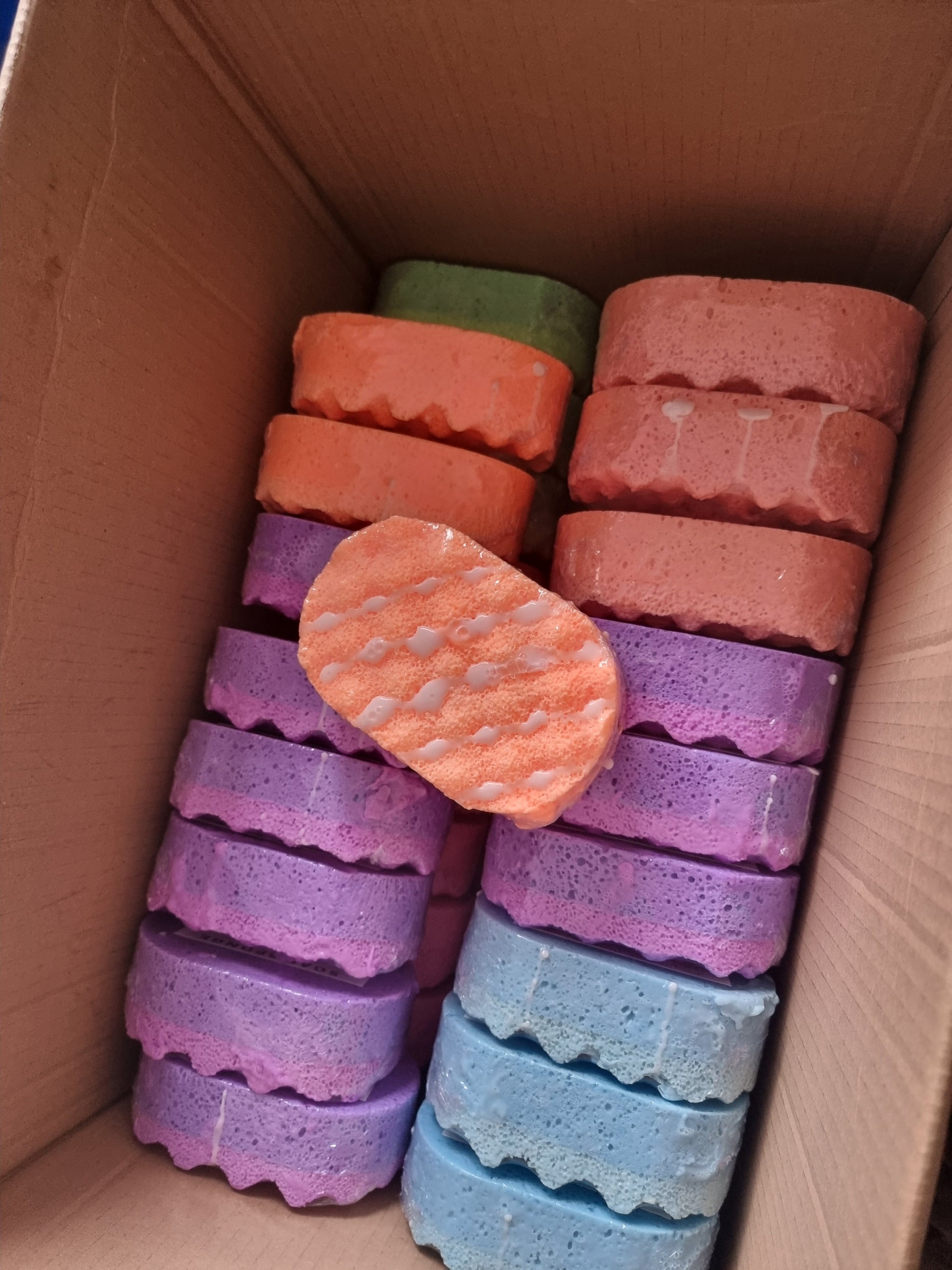 Exfoliating Soap Sponge Lots of scents to choose from! These smell absolutely amazing and are so simple to use They are good for removing fake tan Easy to take along with you for travelling The Exfoliating Sponges remove dead skin leaving it soft & smooth. Our soap sponges will last approx 2-4 weeks with daily use. After all the soap is gone they can be used as a standard sponge :) HOW TO USE: Just wet the sponge with a little bit of warm water to make it softer and wash as normal. Leave to dry between uses. Do not leave the soap sponge submerged in water. ✔ SLS FREE - VEGAN FRIENDLY - CRUELTY FREE - MADE IN THE UK ✔ Handmade with the highest quality ingredients ✔ NONE OF OUR SOAPS HAVE BEEN TESTED ON ANIMALS ✔ LESS WASTE PLEASE NOTE : THIS ITEM IS UNSUITABLE FOR CHILDREN UNDER THE AGE OF 3